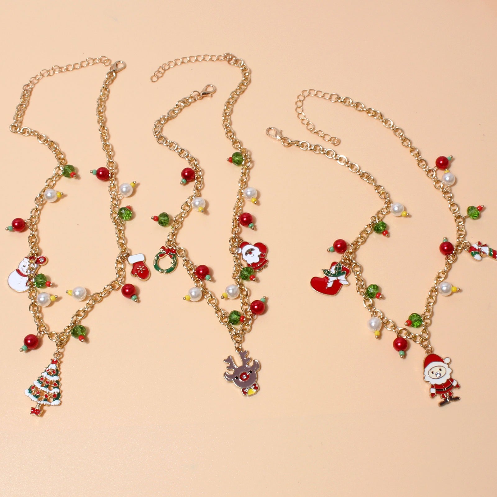Holiday Necklace Colorful Pearl Christmas Necklace Ornaments