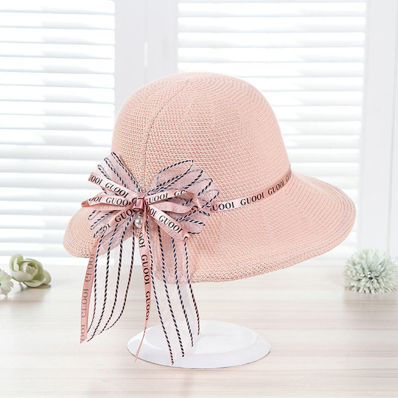 New Boutique Pearl Bow Hat Female Beauty Goddess Travel Resort Must-Have Sun Hat